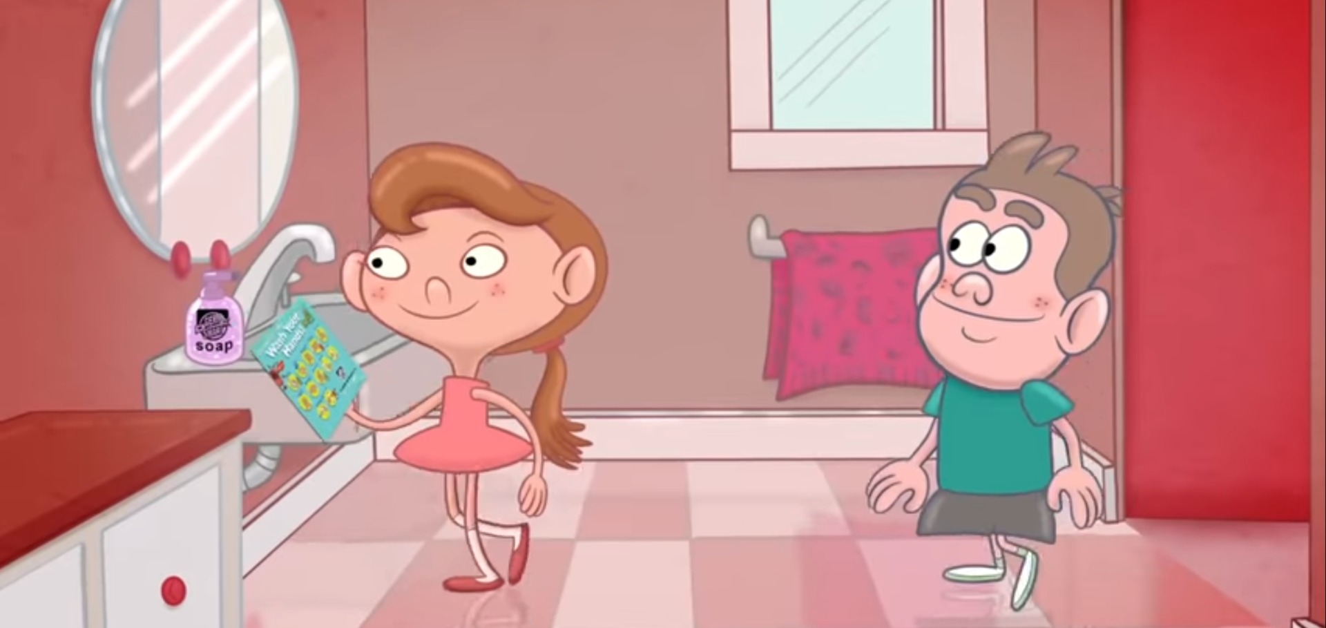 "Top and bottom, top and bottom, in between, scrub them all together, scrub them all together, now they're clean, squeaky clean" (To the tune of Frere Jacques)